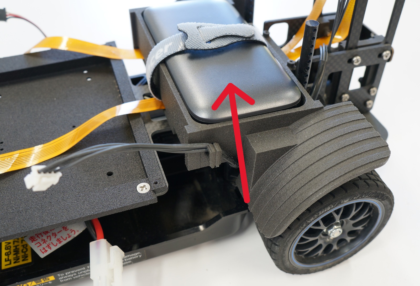 モバイルバッテリーを装着し、マジックバンドで固定します。