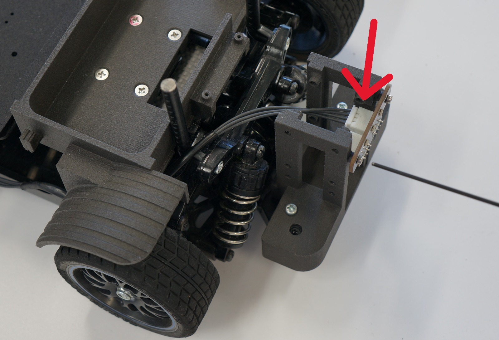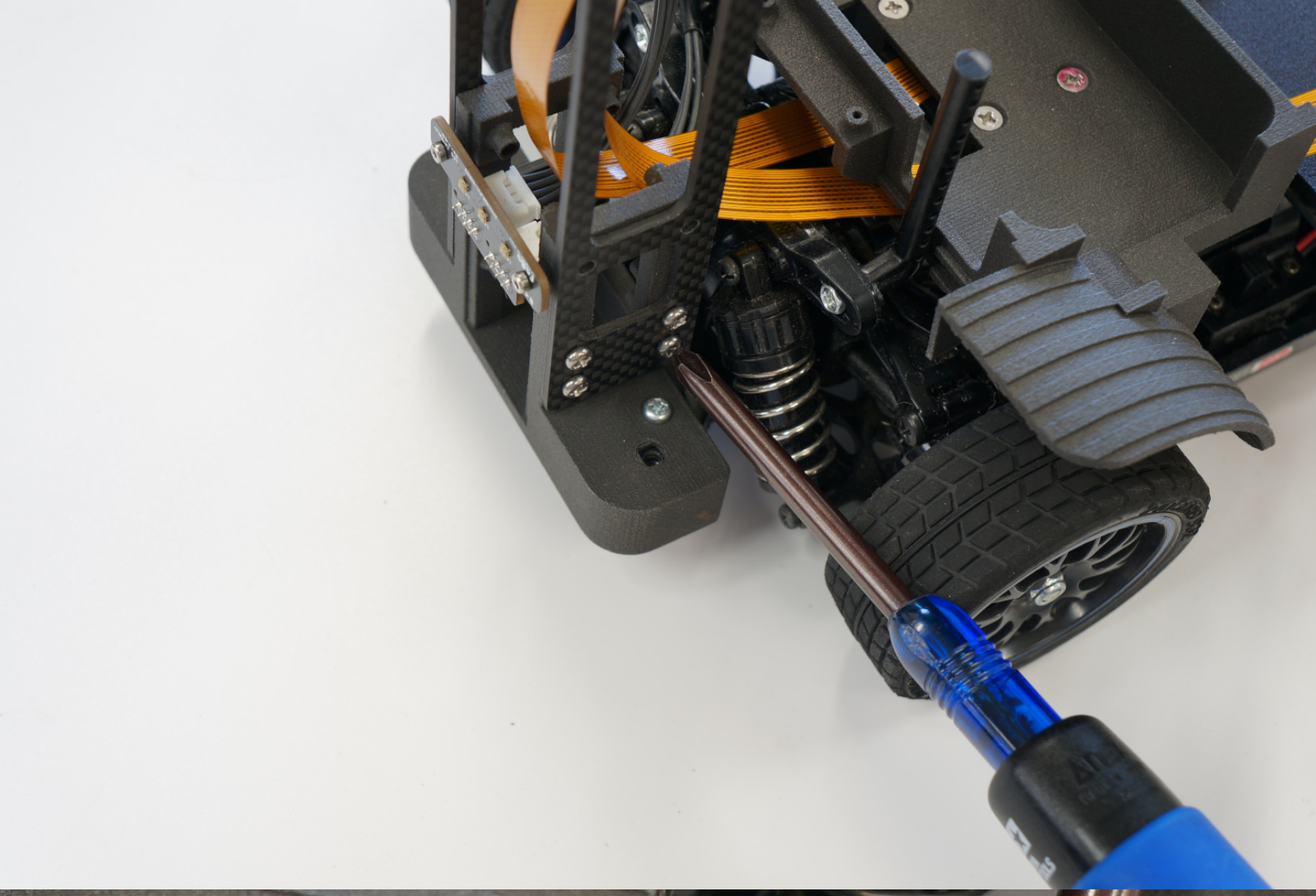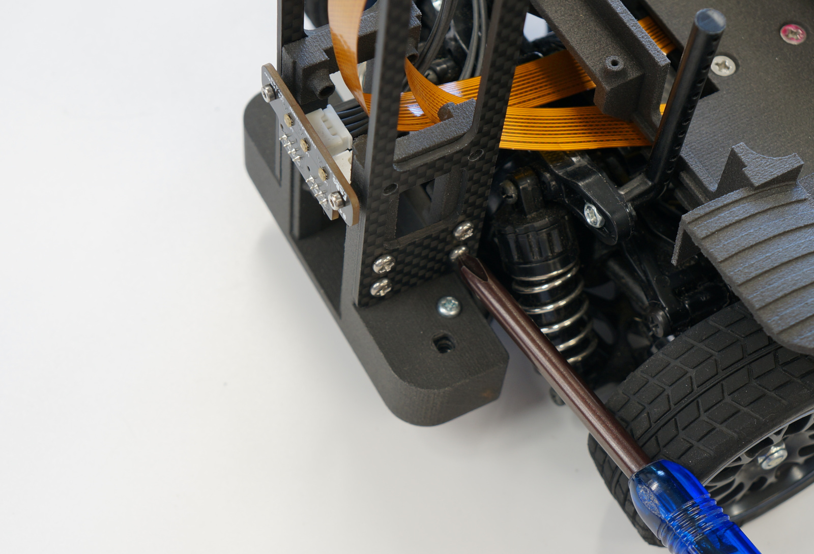 カメラベースをリアパンパーに装着し、タッピングビス M3 X 10でねじを締めます。