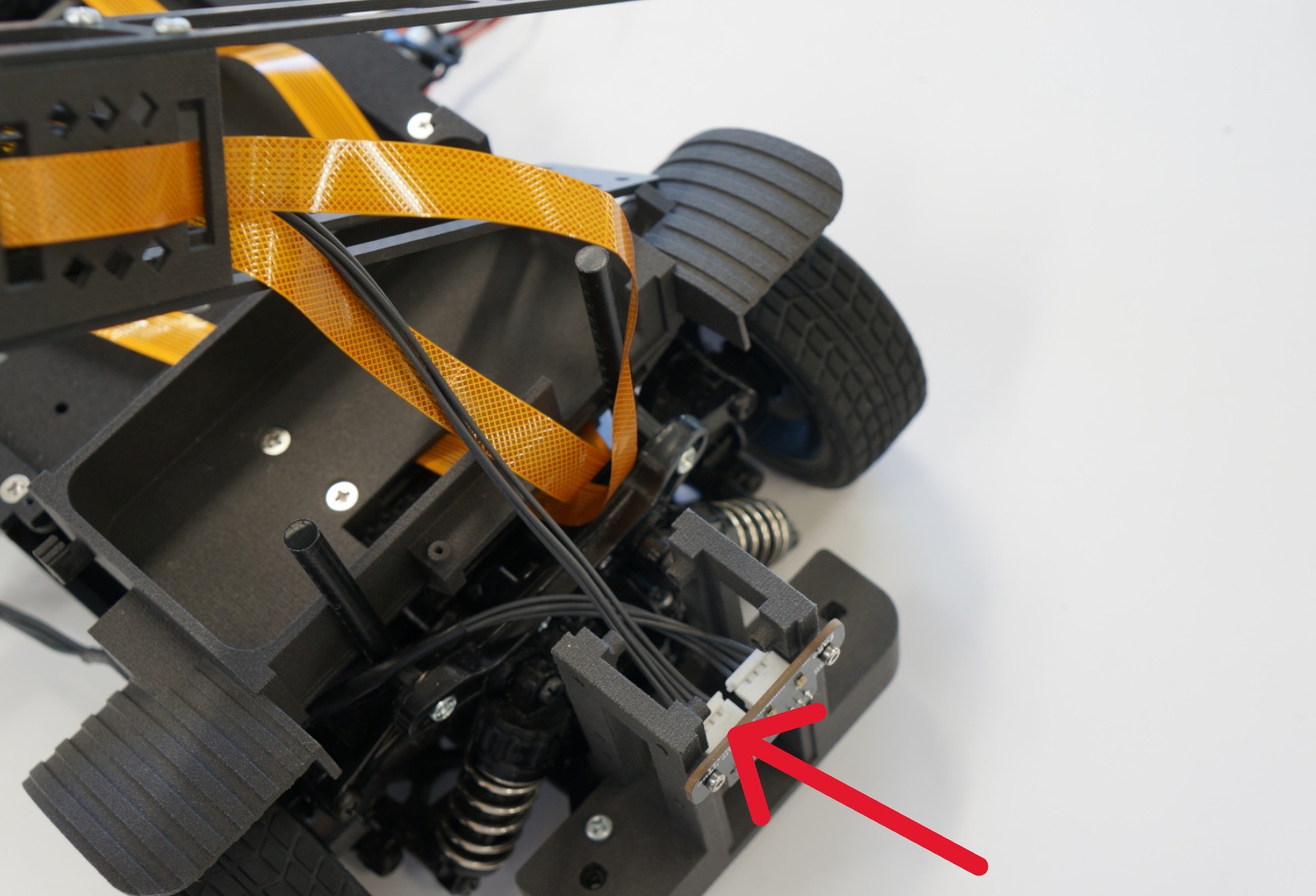 Servoはステアリングサーボに、ESCはRCカーのESC(スピードコントローラーに繋ぎます。)