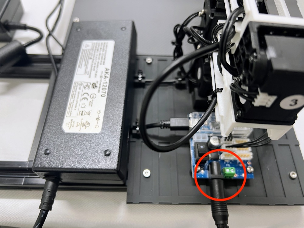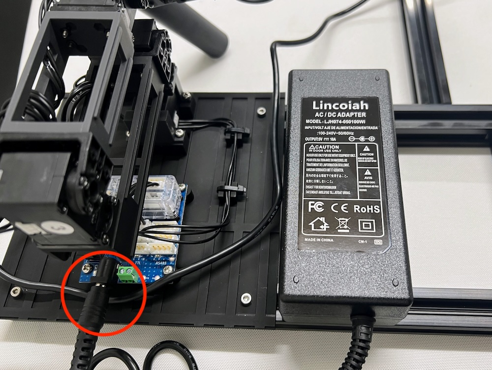 12V電源を白いカーボン側のアームに接続します(Follower)。